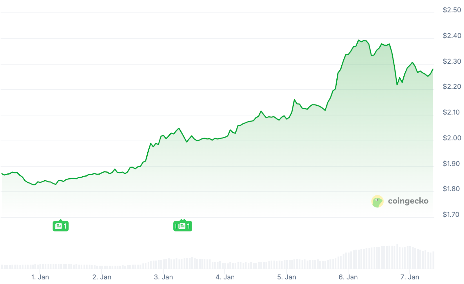 Der XRP-Kurs stieg in den ersten Tagen des Jahres um über 33 Prozent auf fast 2,42 Dollar. Inzwischen hat eine leichte Korrektur eingesetzt und XRP wird rund um 2,28 Dollar gehandelt.