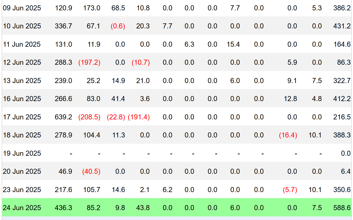 Die Spot Bitcoin ETFs in den Vereinigten Staaten zogen gestern 588,6 Millionen Dollar an Kapital an. Damit befinden sich die ETFs nun in einer Serie von 11 aufeinanderfolgenden Tagen von Zuflüssen.