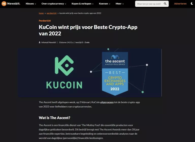 A sponsored article builds trust with the community. Newsbit places your article in the newsfeed and introduces Dutch crypto enthusiasts to your company.