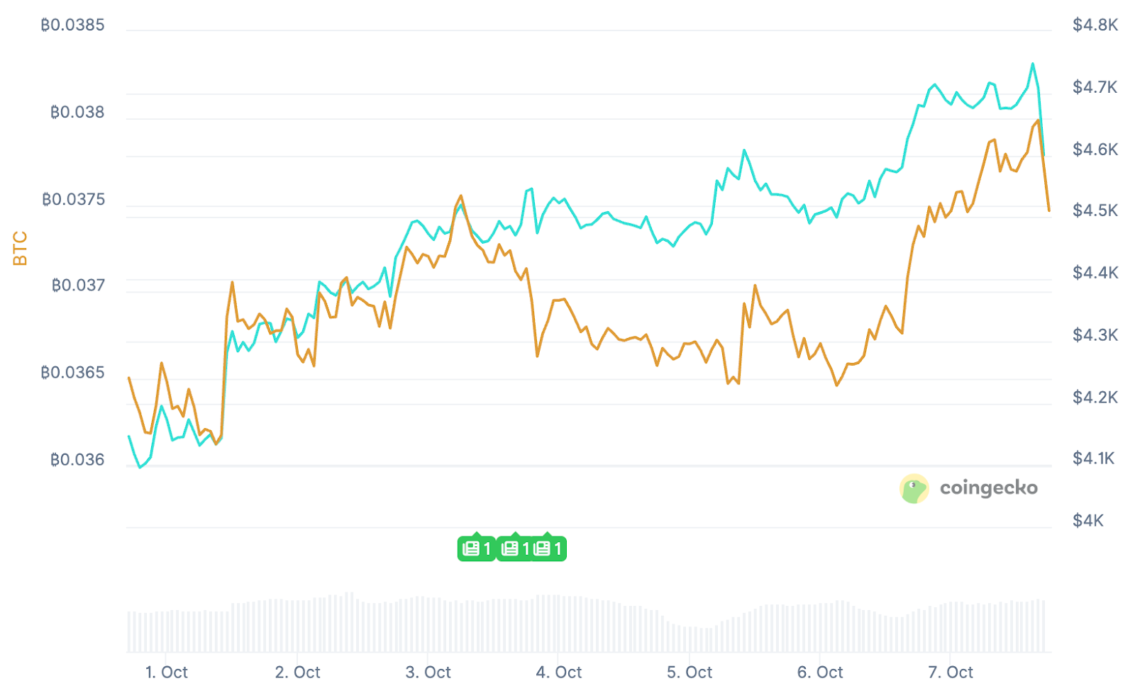 Ende September tauchte ETH noch kurzzeitig unter 4.000 Dollar. Die Unterstützung um dieses Niveau erwies sich als robust. Schon bald sprang Ethereum zurück und legte sogar eine kräftige Erholung hin. In der vergangenen Woche kletterte der Kurs um etwa 11 Prozent. Damit notiert ETH derzeit um 4.450 Dollar – ein neues Rekordhoch scheint nicht mehr weit. Auch gegenüber Konkurrent Bitcoin (BTC) holt der Token spürbar auf, mit einem prozentual stärkeren Anstieg in den vergangenen Wochen.