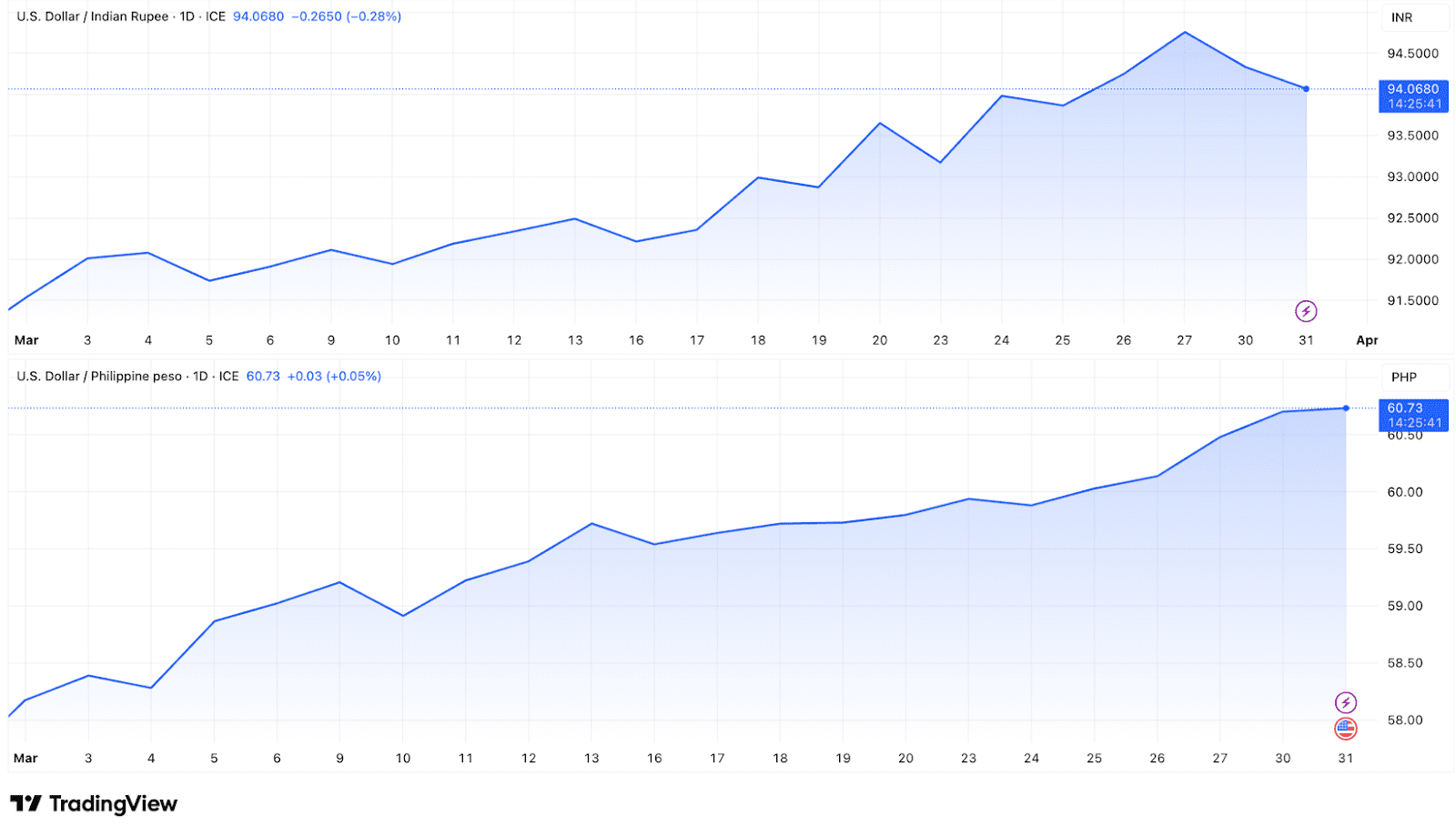 Geopolitische Spannungen im Nahen Osten sorgen weltweit für Unruhe. Nicht nur im Westen, sondern auch in Asien. Mehrere asiatische Währungen stehen derzeit stark unter Druck und die Zentralbanken haben Schwierigkeiten, diesen Druck effektiv zu mindern. Sowohl der philippinische Peso als auch die indische Rupie haben deutlich an Wert verloren, trotz kürzlicher Maßnahmen.