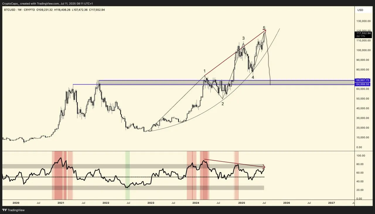 Der pseudonyme Analyst Capo, der dafür bekannt ist, ziemlich negativ über Bitcoin (BTC) zu sein, sagt, dass er immer noch bearish ist. Diese Aussagen macht Capo, nachdem der Kurs diese Woche ein neues Allzeithoch von 123.300 Dollar erreicht hat.