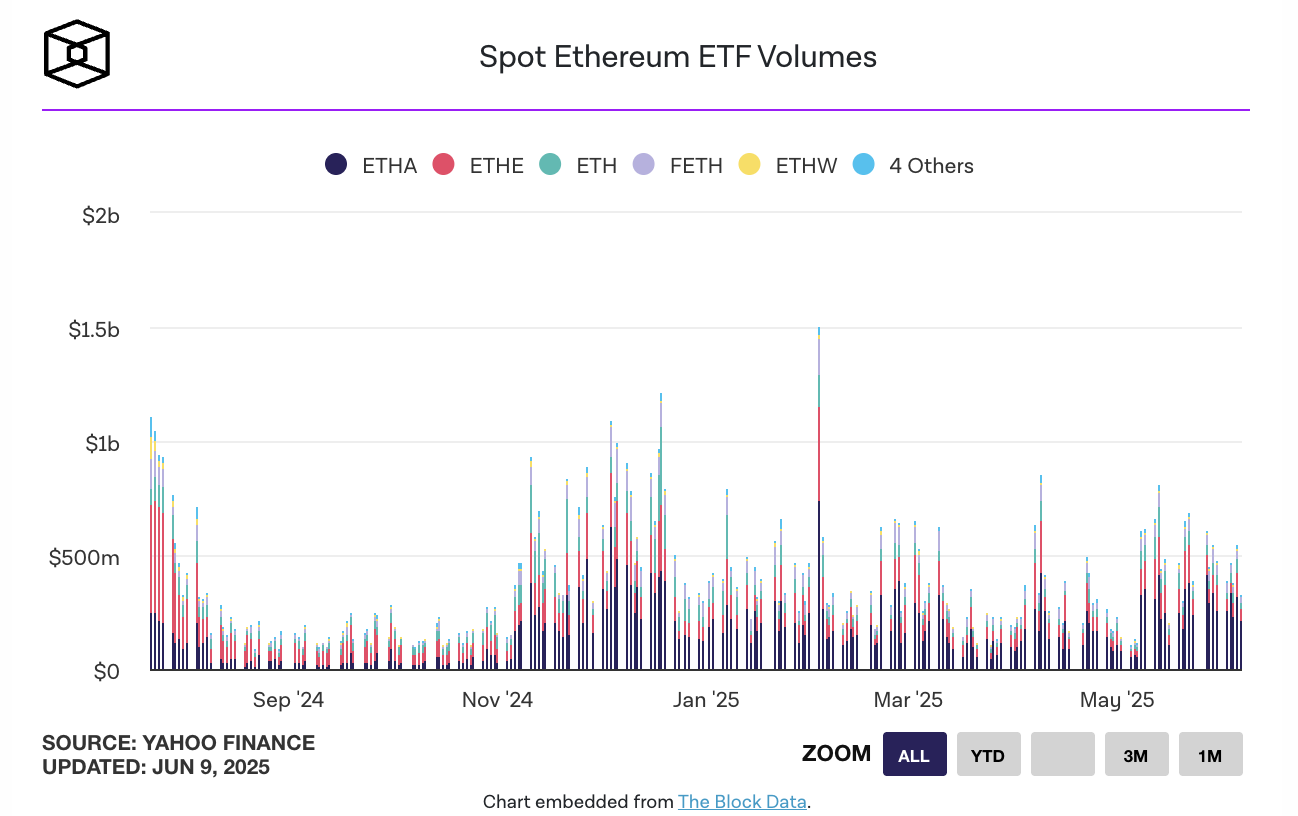 „Es ist nicht überraschend zu sehen, dass Ethereum auf dem Radar institutioneller Investoren erscheint. Wir sehen, dass die Zuflüsse für die ETFs zunehmen. In den letzten 20 Tagen ging es um 815 Millionen Dollar, und über das ganze Jahr gemessen steht jetzt ein positiver Strom von 658 Millionen Dollar,“ so berichten die Analysten von Bernstein weiter.