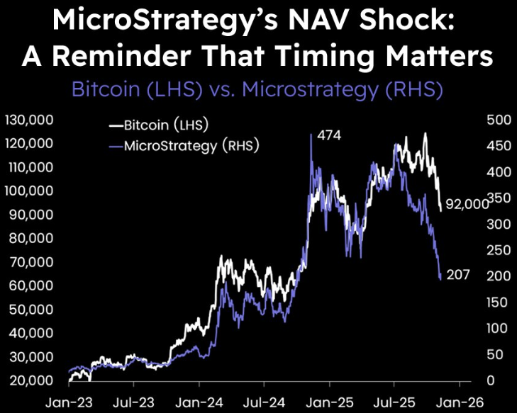 Eine andere Gruppe spürt den Schmerz jedoch deutlich. Es handelt sich um Anleger, die eingestiegen sind, als die Aktie weit über dem Wert des zugrunde liegenden Bitcoin-Bestands notierte. Da der sogenannte Net Asset Value (NAV) gesunken ist, gerät ihre Position stark unter Druck. Das ist der Wert aller Vermögenswerte abzüglich der Schulden, geteilt durch die Anzahl der ausstehenden Aktien.