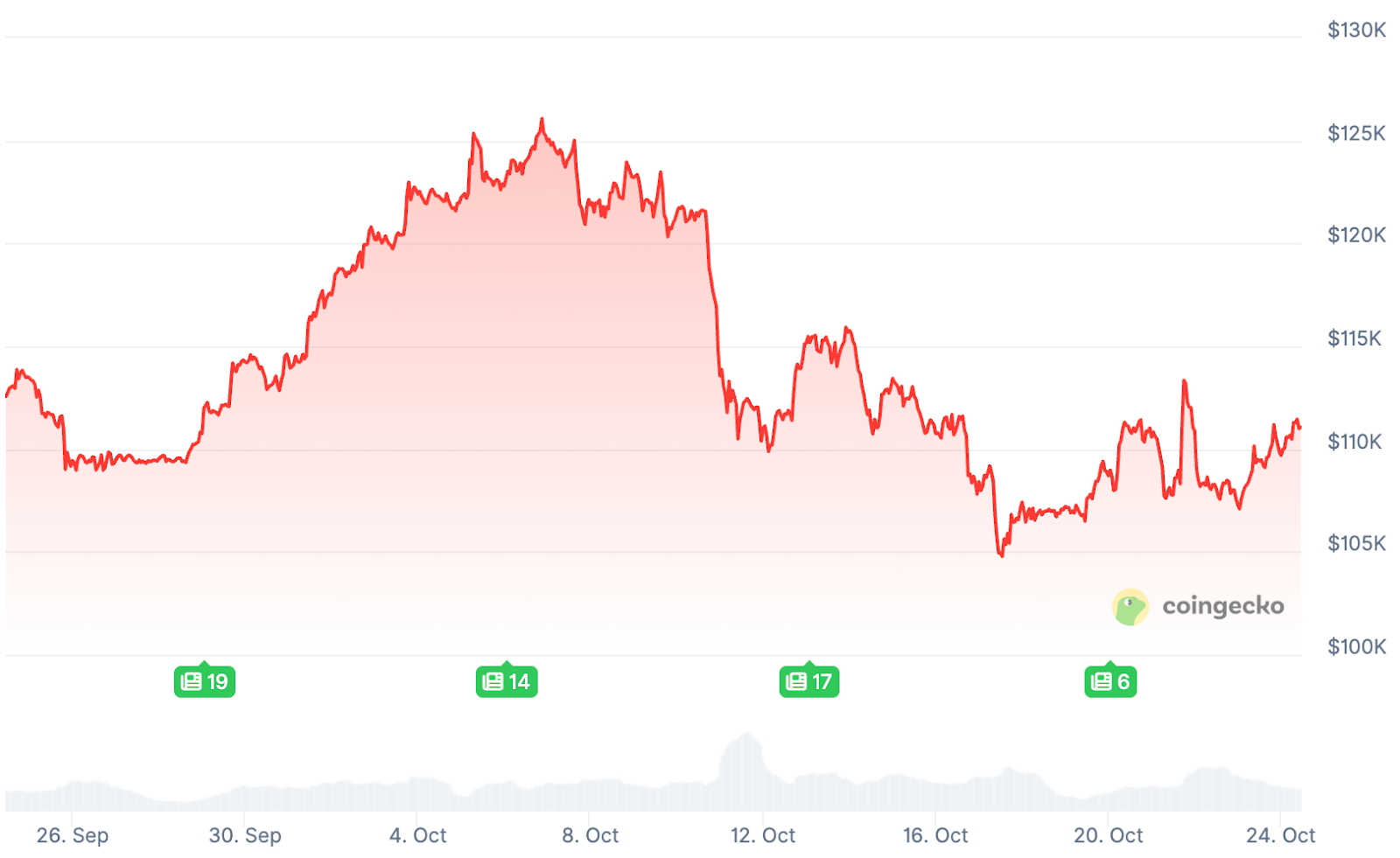 Der Bitcoin-Kurs liegt aktuell rund 2,6 Prozent unter dem Stand zu Beginn des Oktobers. Der Monat startete bei etwa 114.000 Dollar, inzwischen pendelt der Preis um 111.000 Dollar.