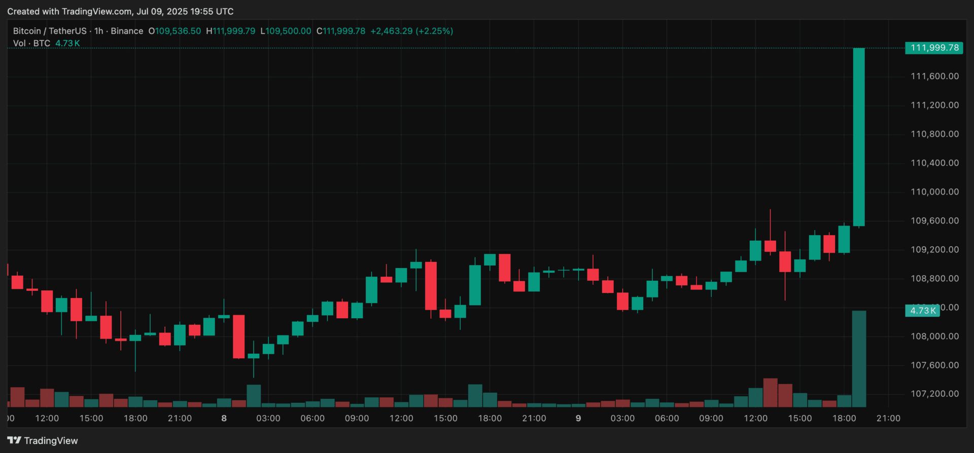 Der Bitcoin-Kurs hat gerade einen neuen Rekord erreicht. Der Preis der größten Kryptowährung der Welt stieg heute von 109.000 auf einen Preis von 112.000 Dollar. Damit durchbrach BTC sein vorheriges Allzeithoch von 111.900 Dollar, das am 22. Mai 2025 erreicht wurde.