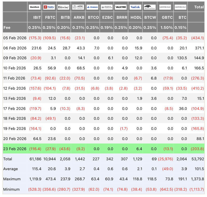 Die US-amerikanischen ETFs verzeichnen seit geraumer Zeit einen Nettoabfluss. Nach Angaben von Farside Investors belief sich der Abfluss am Montag auf über 200 Millionen Dollar.