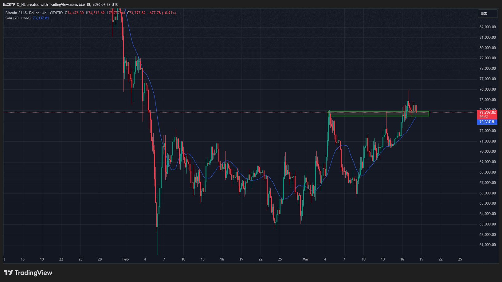 Der Bitcoin Kurs kühlt zwar etwas ab, bleibt jedoch vorerst über einer wichtigen Unterstützung und dem 20-Perioden-Durchschnitt auf dem Vier-Stunden-Chart.