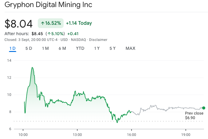 In den ersten Stunden schoss der Aktienkurs von American Bitcoin um 91 Prozent hoch, ausgehend vom Schlusskurs, den Gryphon am Dienstag verzeichnete. Damit stieg der Aktienkurs von 6,90 Dollar auf einen Höhepunkt von 13,20 Dollar.