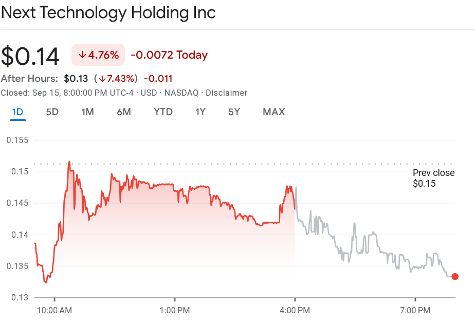 Als Folge der Nachrichten haben die Aktien von Next Technology schwer gelitten. Sie fielen um 4,76 Prozent auf 0,14 Dollar. Im nachbörslichen Handel fielen sie um weitere 7,43 Prozent auf 0,13 Dollar. In dieser Hinsicht scheinen die Aktionäre zu glauben, dass Next Technology tatsächlich wieder eine ganze Menge Aktien verkaufen wird.