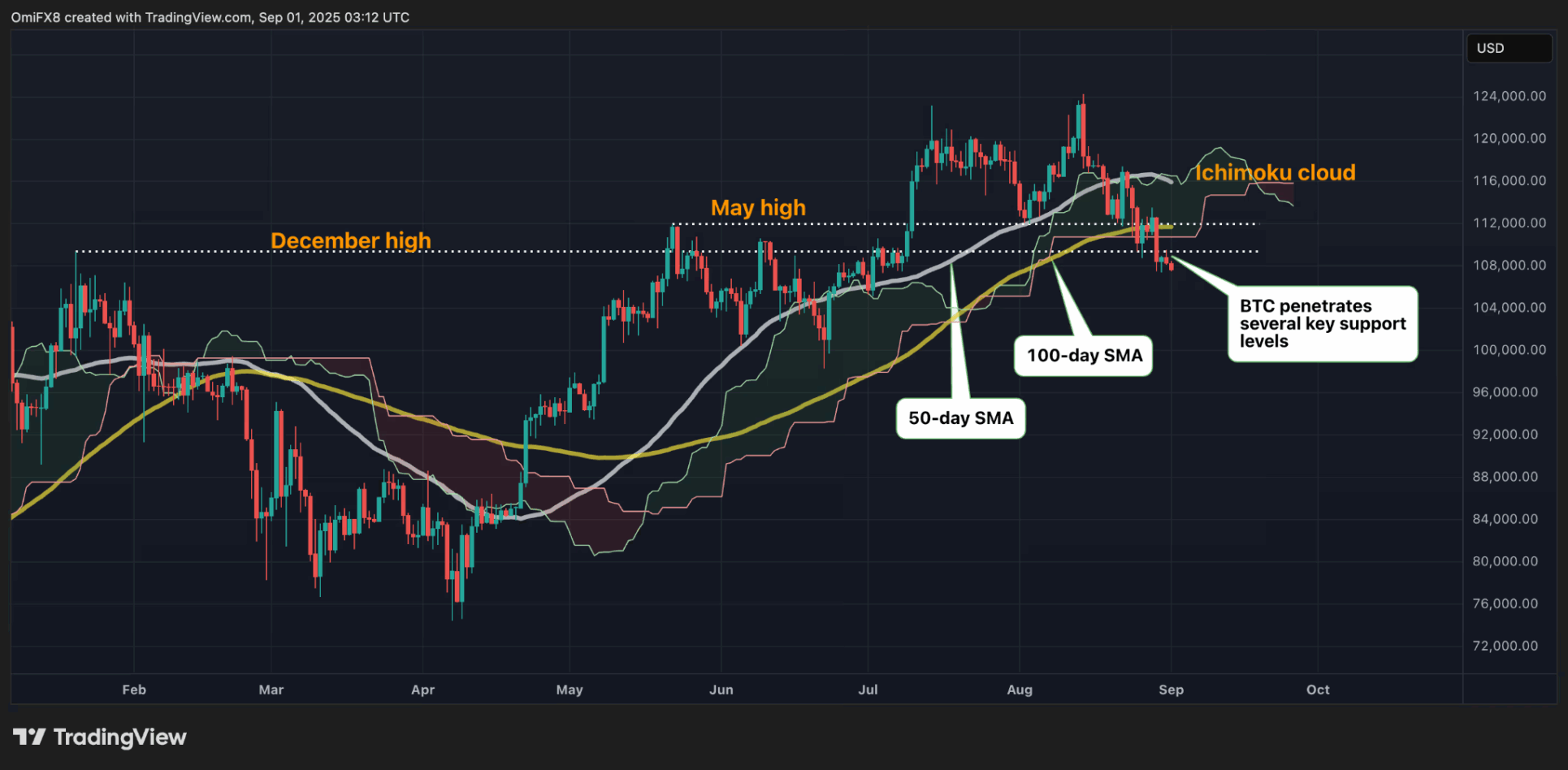 Auch die 50- und 100-Tage-Durchschnitte hielten nicht stand. Ebenso wenig wie die Höchststände aus Mai und Dezember: jeweils 111.965 und 109.364 Dollar. All diese Niveaus sind mittlerweile durchbrochen.