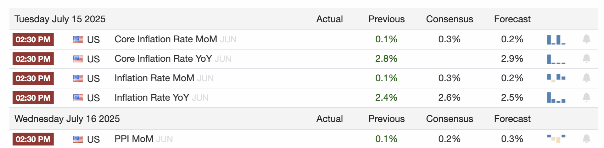 Der Verbraucherpreisindex (CPI) und der Produzentenpreisindex (PPI) scheinen wieder etwas anzusteigen. Das könnte das Narrativ befeuern, dass Trumps Zollkrieg für Inflation sorgt, und dass die Zentralbank etwas dagegen tun muss.