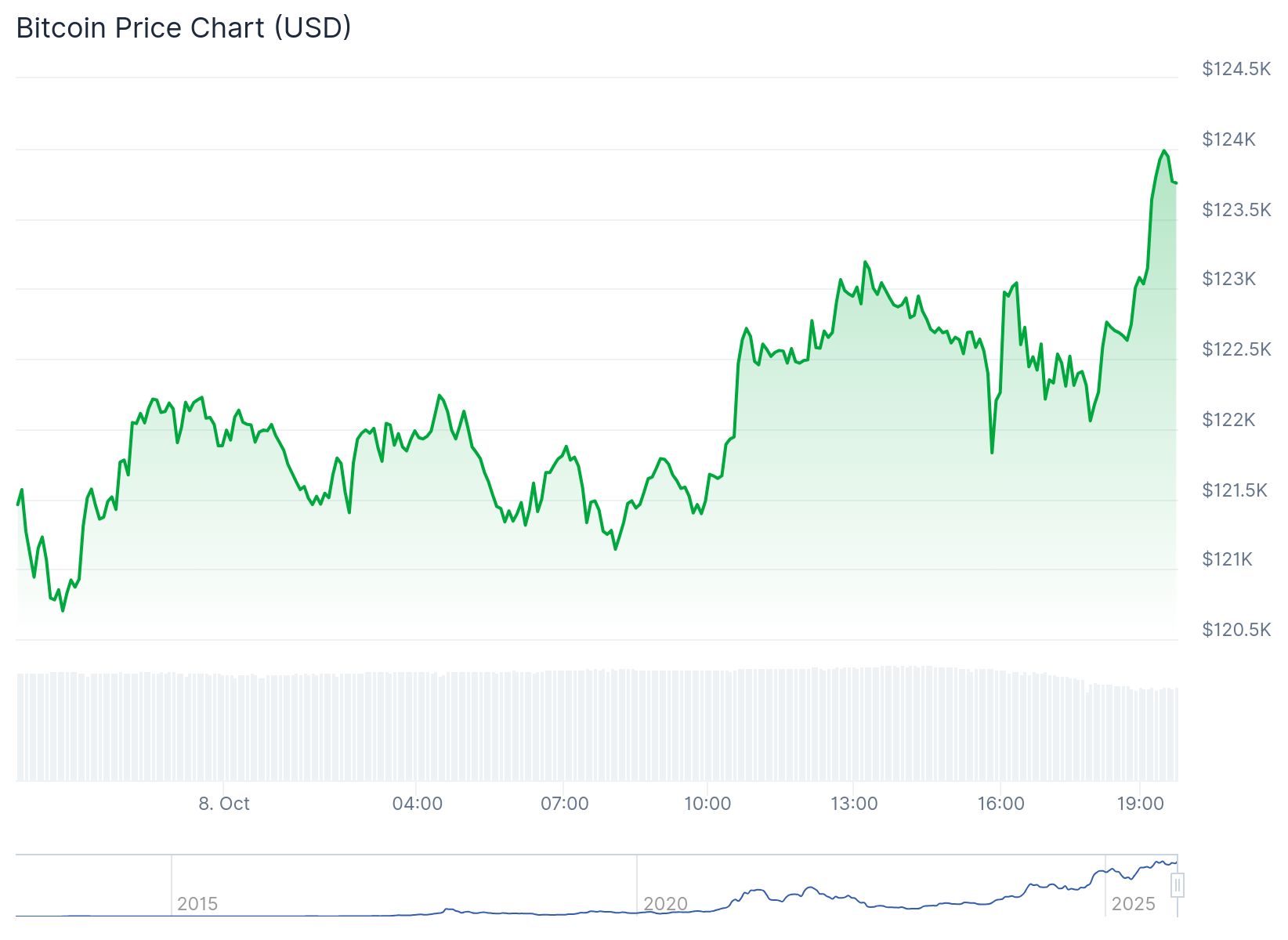 Heute ging es für Bitcoin rauf und runter, doch in den vergangenen Stunden hatten die Verkäufer kaum noch etwas zu melden. Gegen 18:00 Uhr war die orangefarbene Münze etwas mehr als 122.000 Dollar wert, inzwischen können wir rund 2.000 Dollar drauflegen.