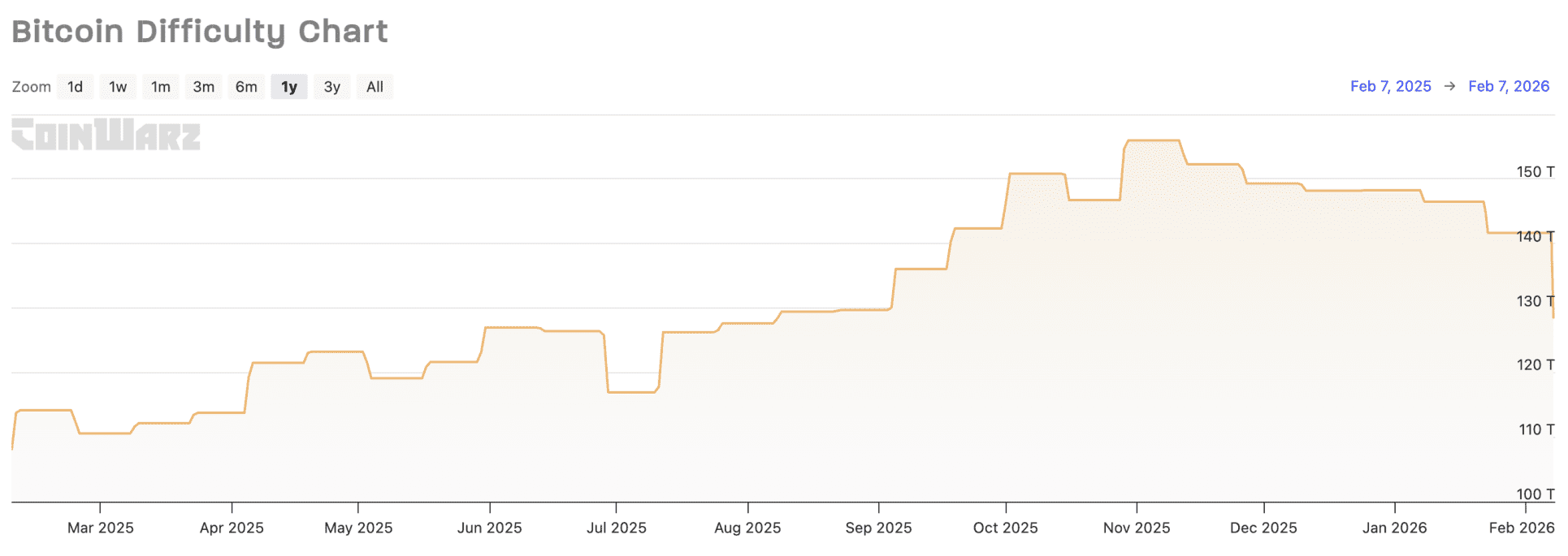 Laut Daten von CoinWarz ist dies der stärkste Rückgang seit dem Sommer 2021. Damals sorgte das chinesische Krypto-Mining-Verbot für einen massiven Ausfall von Minern und mehrere drastische Abwärtsanpassungen in kurzer Zeit.