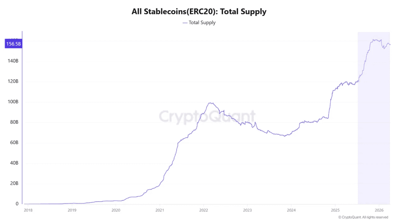 Auffällig ist, dass der Stablecoin-Markt gleichzeitig Rekordniveaus erreicht. Das scheint auf den ersten Blick bullisch, da es darauf hindeutet, dass viel Kapital im Kryptosystem bereitsteht.