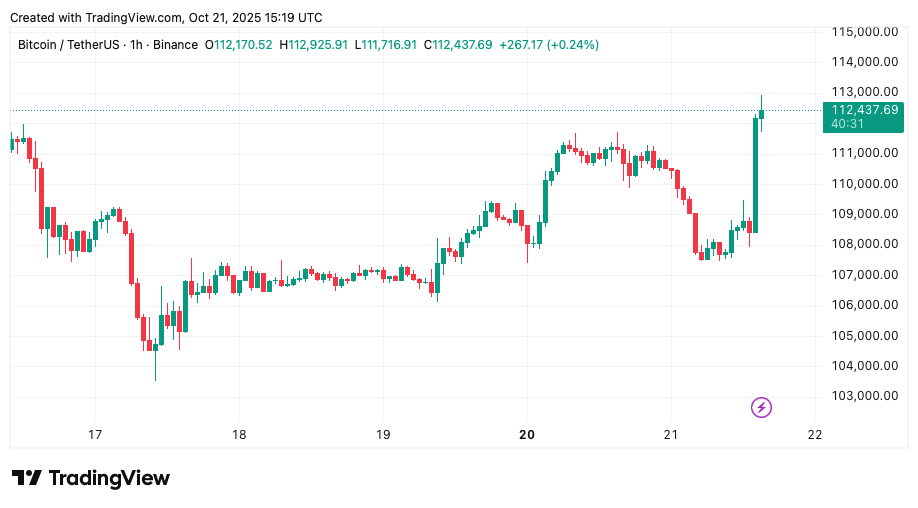 Der Bitcoin-Kurs (BTC) reagierte positiv auf die Nachricht und stieg am Dienstag um 3,7 Prozent auf rund 112.700 Dollar. Damit setzt BTC seine Erholung von der Korrektur zu Monatsbeginn fort. Analysten werten den Anstieg als Zeichen, dass Anleger Vertrauen aus der wachsenden institutionellen Unterstützung in den Vereinigten Staaten schöpfen.