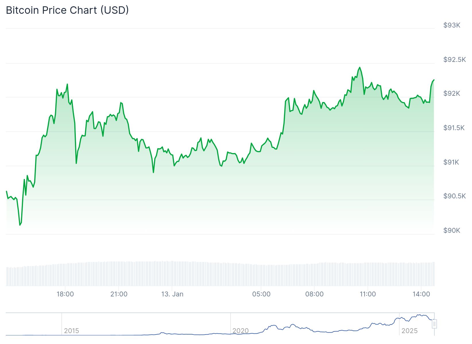 Investoren nehmen die Zahlen dennoch positiv auf. Der Bitcoin-Kurs bewegte sich seit dem Morgen knapp unter 92.000 Dollar, kletterte mit den Zahlen jedoch auf fast 92.600 Dollar. Mittlerweile ist er allerdings wieder um einige Hundert Dollar gefallen.