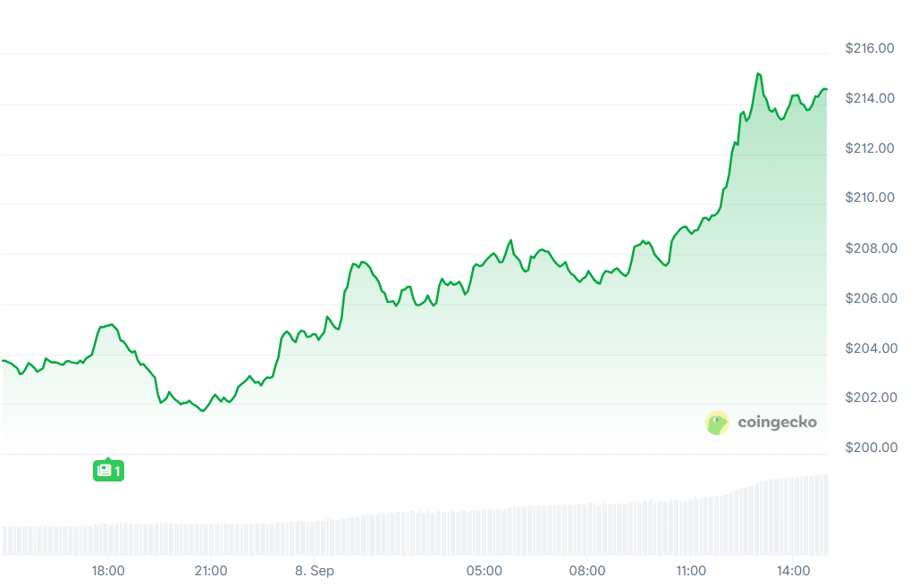 Bei Solana (SOL) ist der Anstieg noch beeindruckender. In den letzten 24 Stunden stieg der Token um 5,65 Prozent. Damit nähert sich SOL erneut dem Höchstwert von Ende August, was das höchste Niveau seit Februar dieses Jahres ist.