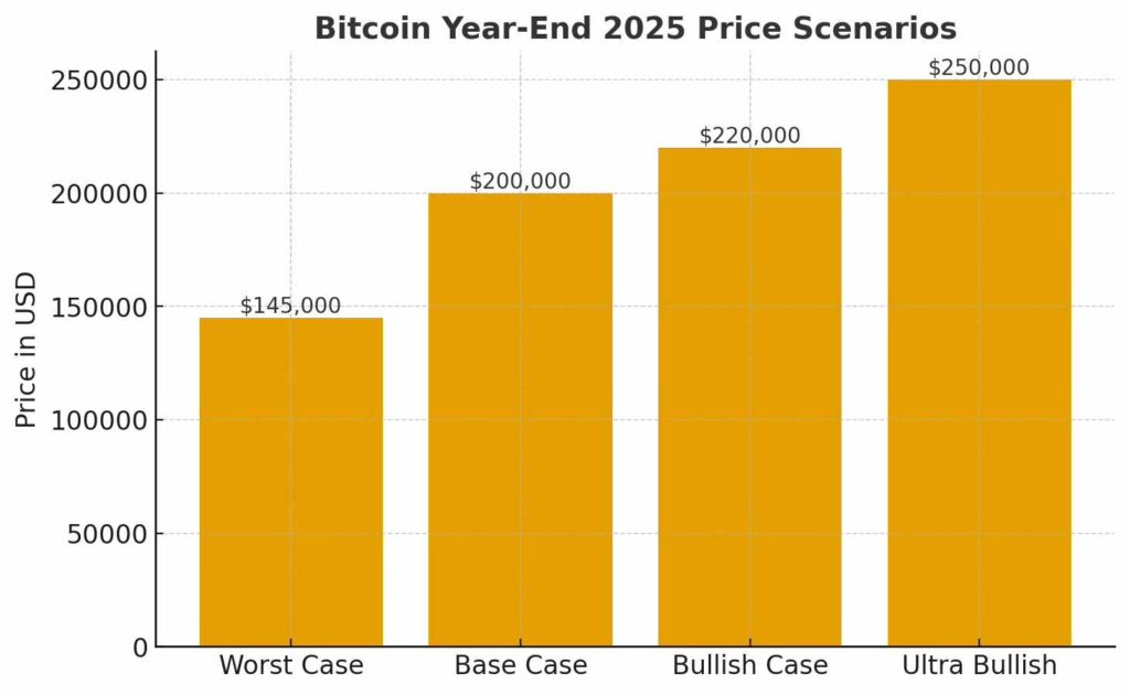Das AI-Modell von OpenAI analysierte technische Signale, makroökonomische Trends und Marktstimmung. Das Ergebnis? Im optimistischsten Szenario sieht ChatGPT den Kurs auf 250.000 Dollar steigen. In einem gemäßigteren Szenario bewegt sich der Kurs zwischen 145.000 und 195.000 Dollar.