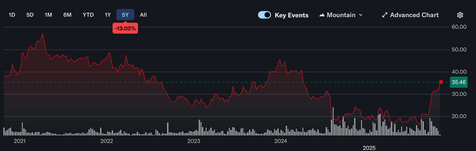 Dank der starken Zahlen setzt Intel nach Jahren schmerzhafter Verluste seine positive Kursserie fort. Vor fünf Jahren, kurz vor dem Ausbruch der KI-Revolution, notierte die Aktie an der Frankfurter Börse (Xetra) noch über 57 Euro. Im April dieses Jahres fiel sie jedoch auf ein Tief von unter 17 Dollar. Seitdem ist die Aktie um mehr als 108 Prozent gestiegen.