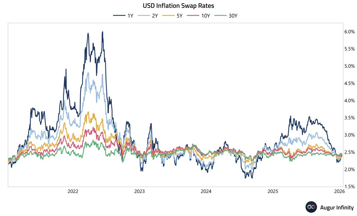 Sollte der Markt recht behalten, wird die Inflation spätestens im Laufe des Jahres 2026 immer weniger zum Problem werden oder als Gegenargument für Zinssenkungen dienen.
