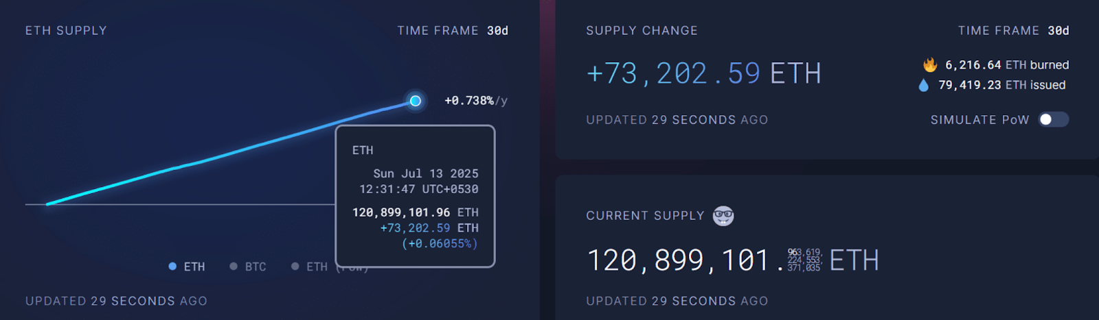 Während Bitcoin seinen aktuellen Kursanstieg vor allem der strukturellen Knappheit verdankt, folgt Ethereum einem ähnlichen Kurs. In den letzten 30 Tagen betrug die Nettoausgabe nur 73.202 ETH. Gleichzeitig sahen Ethereum ETFs einen Zufluss von sage und schreibe 725.000 ETH. Die Nachfrage übersteigt das Angebot um einen erstaunlichen Faktor zehn.