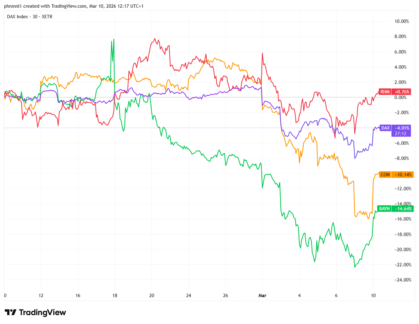 Am Dienstagvormittag notiert der DAX bei ca. 23.409 Punkten, nachdem er den vorherigen Handelstag mit einem Minus von 0,77 Prozent abgeschlossen hatte. Damit markiert der Index den tiefsten Stand seit November 2025. Seit dem Durchbrechen der Marke von 25.000 Punkten Anfang März summierten sich die Kursverluste auf über 6 Prozent.