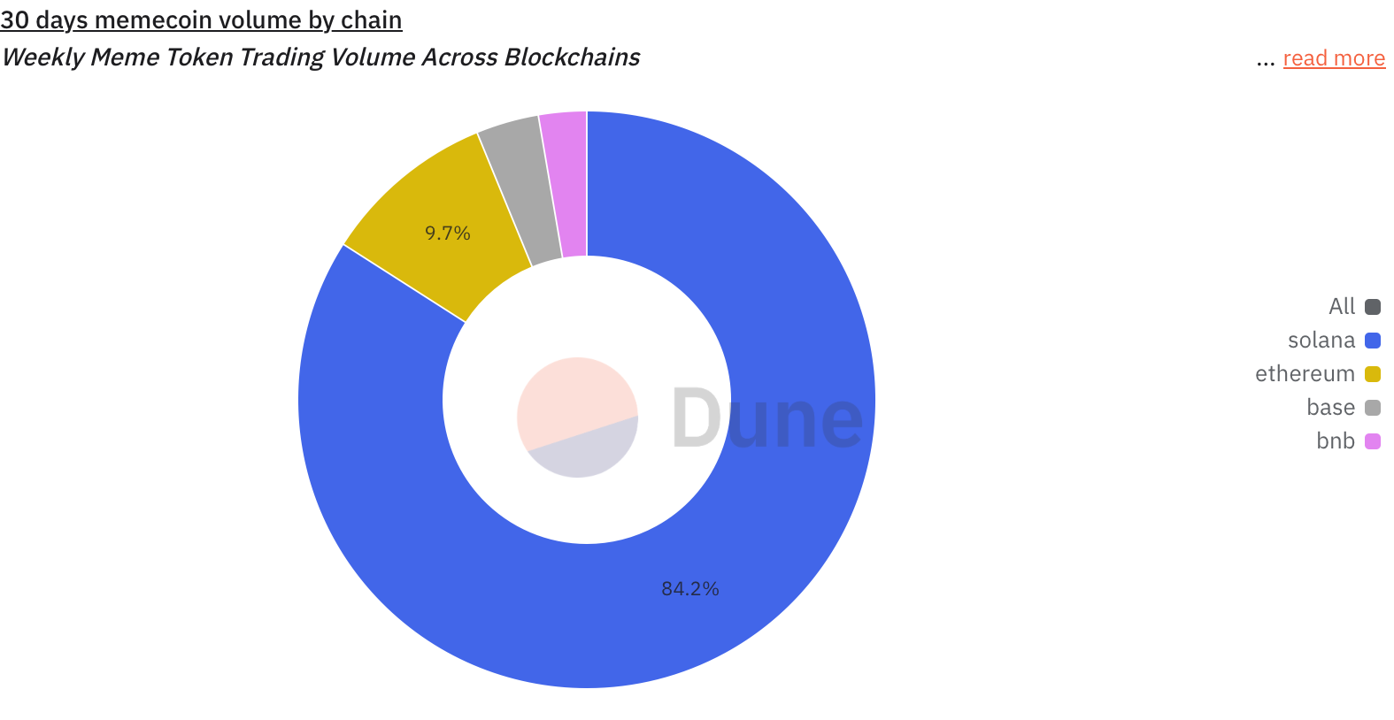 „Das Launchen eines Tokens ist einfacher denn je,“ sagt Gherghelas. Dennoch bleibt Ethereum hierbei hinter Solana zurück, das derzeit etwa 90 Prozent des Memecoin-Volumens für sich beansprucht. Dies geht aus Daten von Dune Analytics hervor.