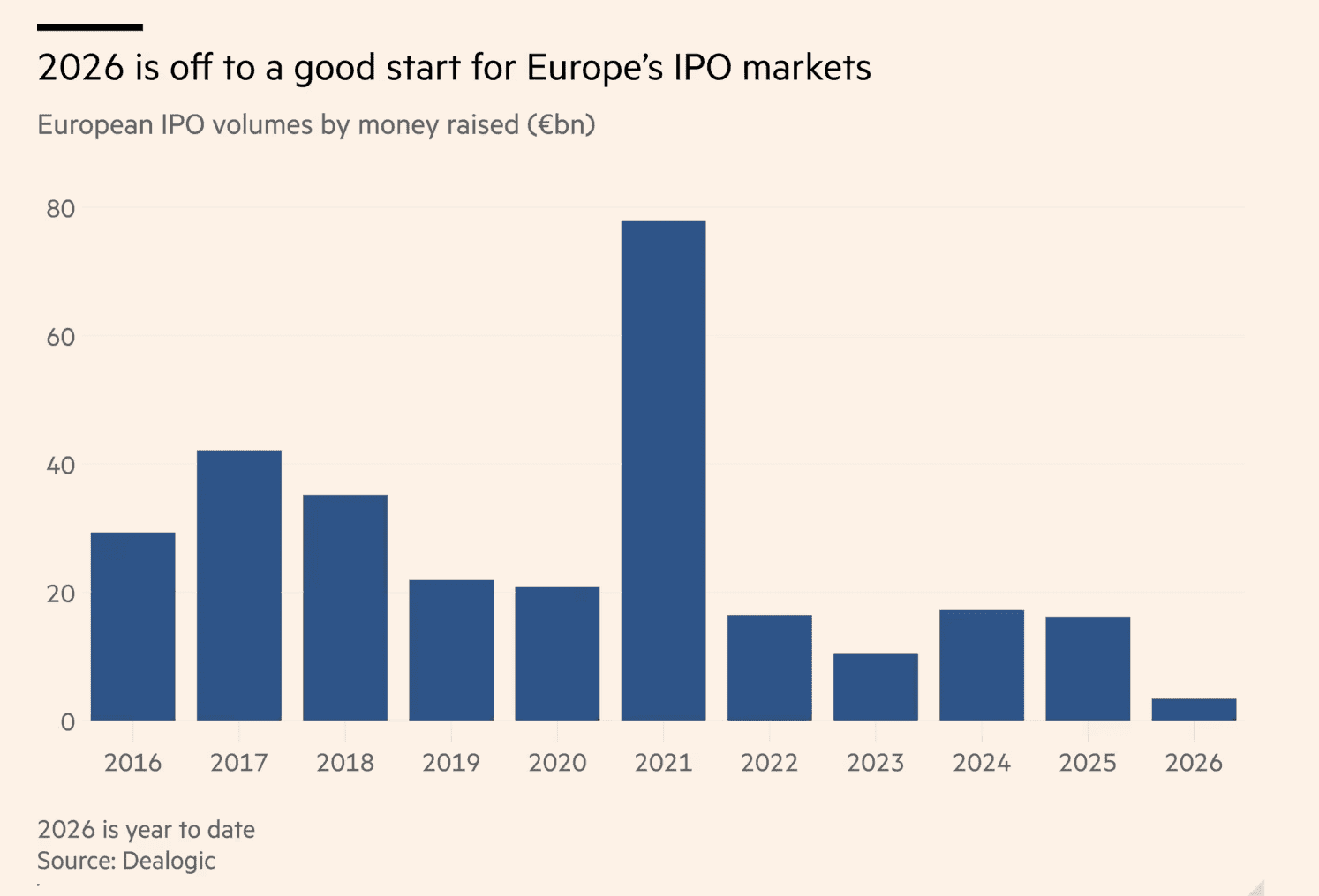Der europäische IPO-Markt hat 2026 einen bemerkenswert starken Auftakt erlebt. In den ersten Wochen des Jahres wurde mehr Kapital eingesammelt als jemals zuvor in vergleichbaren Zeiträumen, was die Hoffnung auf eine breitere Belebung von Börsengängen nährt.