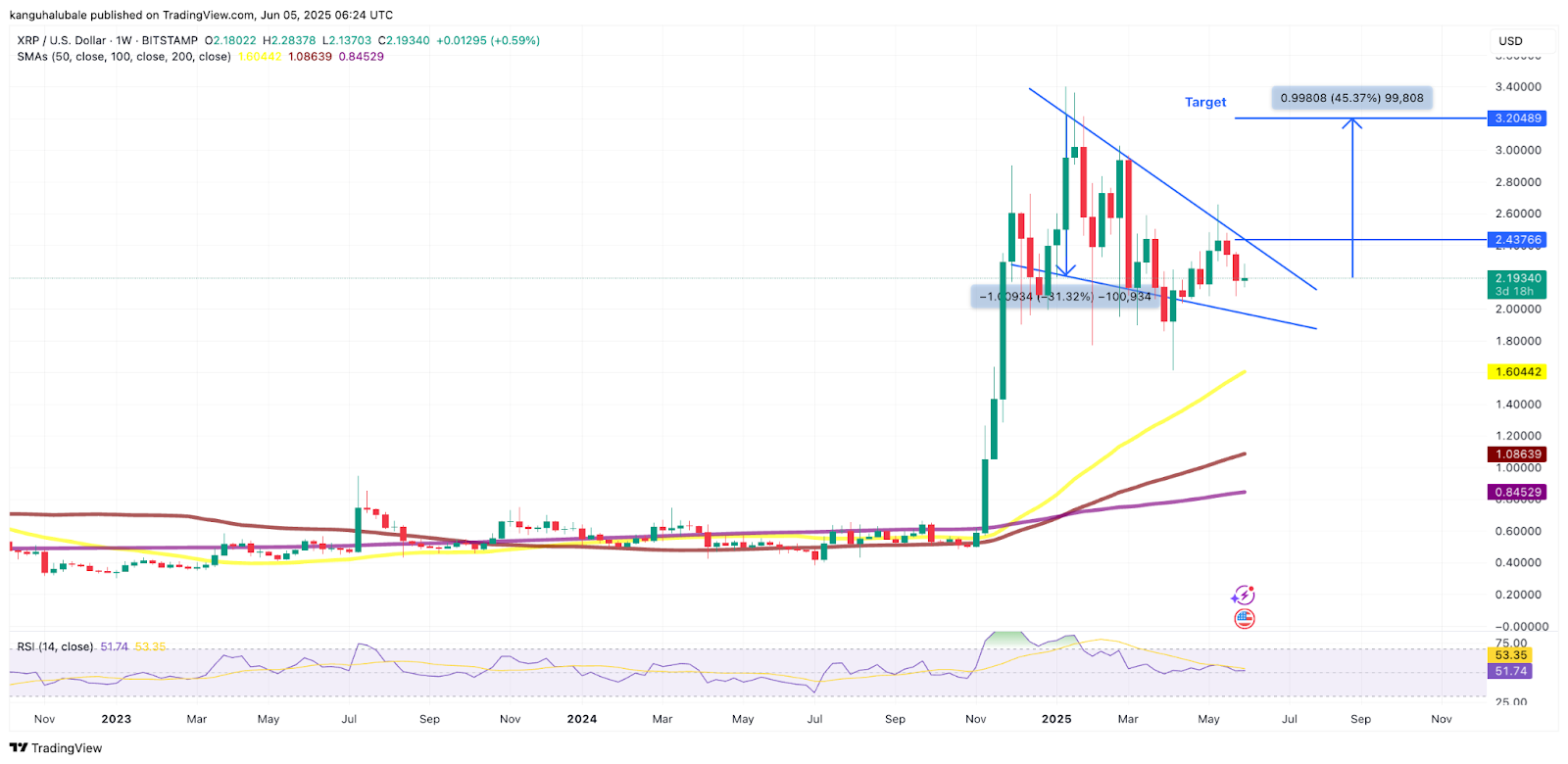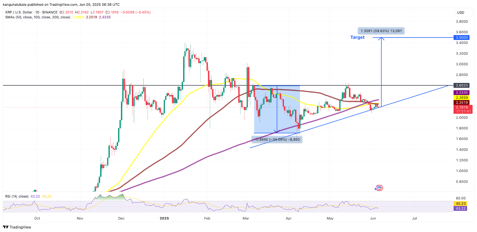 Der XRP-Kurs liegt bei 2,18 Dollar, aber laut mehreren Diagrammen und Marktdaten könnte eine Rallye auf 3 Dollar bevorstehen. Technische Muster wie ein falling wedge und ascending triangle, zusammen mit steigendem Kaufdruck und einer bullishen RSI-Divergenz, deuten auf einen möglichen explosiven Ausbruch im Juni hin.