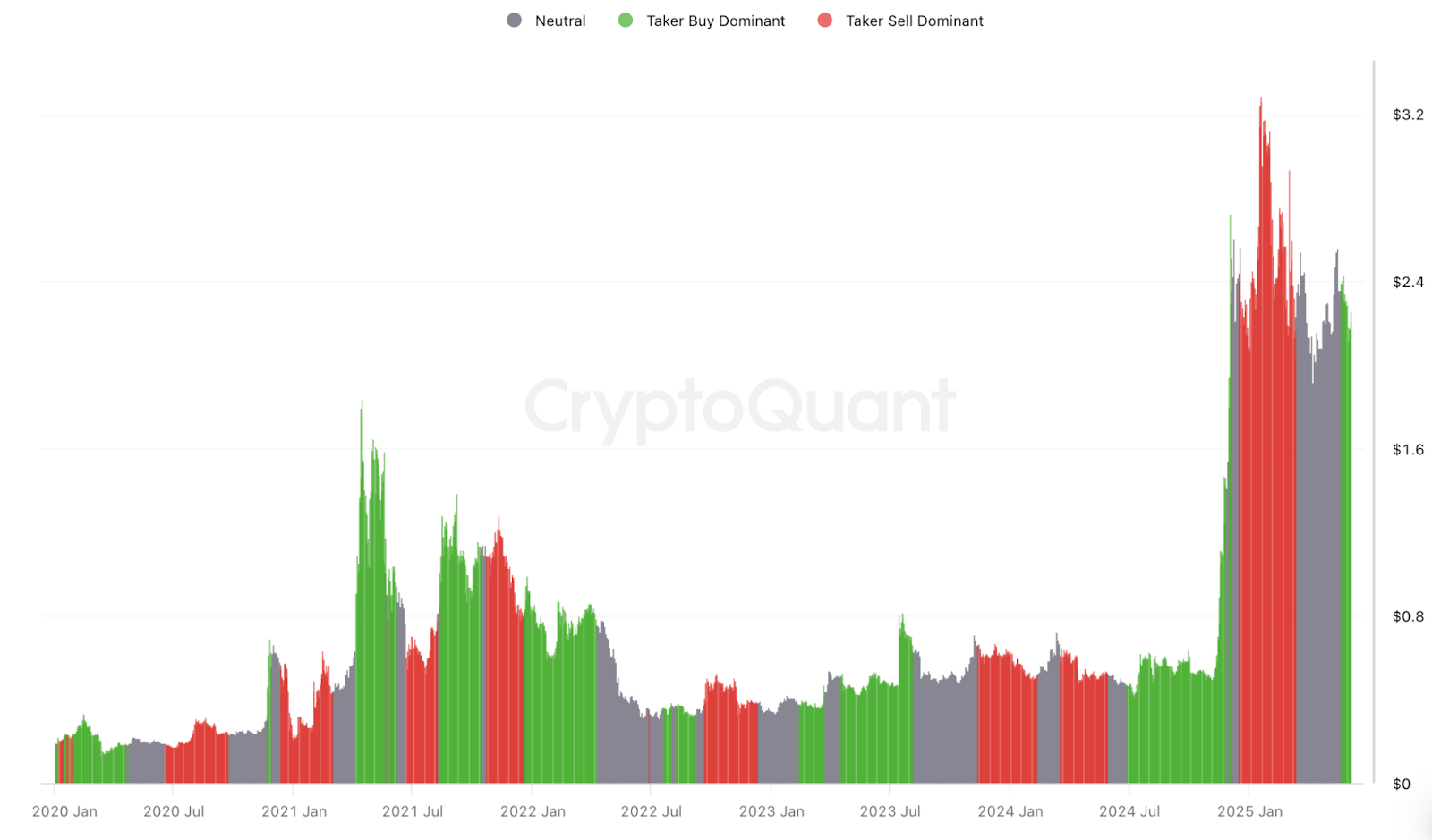 Abschließend zeigen Daten von CryptoQuant, dass die 90-Tage kumulative Volumen-Delta (CVD) wieder positiv ist. Dies bedeutet, dass die Anzahl der Kaufaufträge derzeit größer ist als die Anzahl der Verkaufsaufträge, trotz eines Kursrückgangs von 17 Prozent seit dem lokalen Höchststand von 2,65 Dollar am 12. Mai. Die Wende zur Kaufdominanz begann am 19. Mai und wird als Zeichen für erneutes Vertrauen unter den Investoren interpretiert.