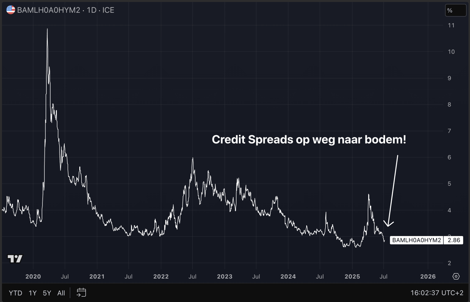 Niedrige Credit Spreads sagen uns also: Es gibt viel Vertrauen in die Wirtschaft. Man erwartet nicht, dass Unternehmen in Schwierigkeiten geraten, denn sonst hätten sie höhere Zinsen berechnet, um dieses Risiko zu kompensieren.