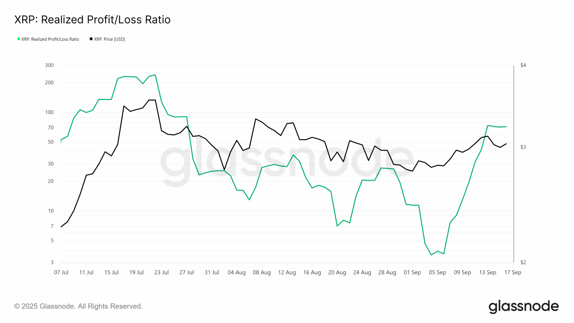 Aus Daten des Analyseplattforms Glassnode geht hervor, dass das Verhältnis von realisiertem Gewinn zu Verlust für XRP einen Höhepunkt erreicht hat. Das bedeutet, dass viele Anleger ihre Gewinne realisieren. Diese Gewinnmitnahmen bestätigen, dass der Handel mit XRP für viele Investoren profitabel geblieben ist, setzen jedoch auch zusätzlichen Druck auf den Kurs.