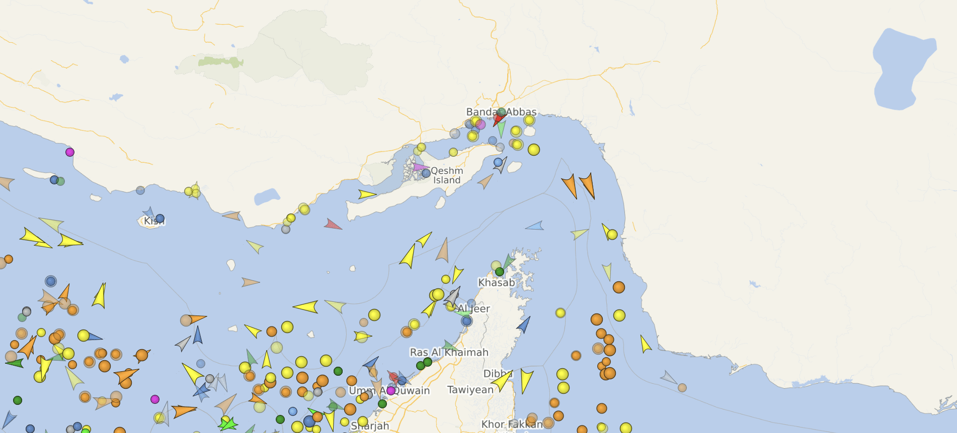 Die Schiffe Jag Vasant und Pine Gas zogen am Montag nordwärts von der Küste der Vereinigten Arabischen Emirate in Richtung der iranischen Inseln Qeshm und Larak. Anschließend scheinen sie Kurs auf den Golf von Oman zu nehmen.