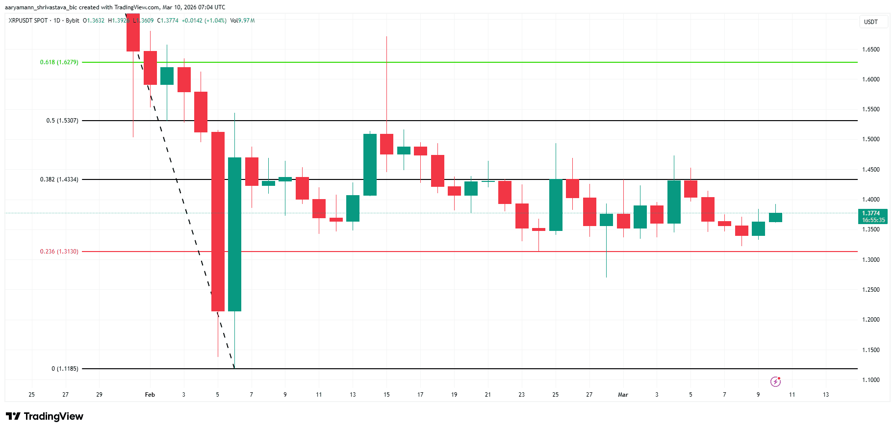 Was den Kurs angeht, bleibt es jedoch abzuwarten, ob es zu einem Ausbruch kommt. Bei einem Kurs von 1,38 Dollar handelt XRP zwischen der Unterstützung bei 1,31 Dollar und dem Widerstand bei 1,43 Dollar.