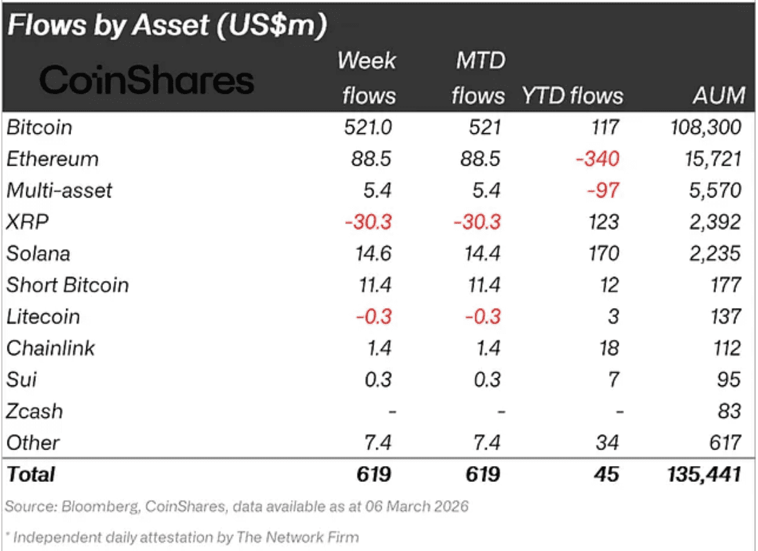 Betrachtet man die Kapitalströme institutioneller Anleger, scheint dies der Fall zu sein. In der vergangenen Woche musste XRP auf institutioneller Ebene einen Verlust von 30,3 Millionen Dollar hinnehmen, während Bitcoin und Ethereum erhebliche Zuflüsse verzeichneten.