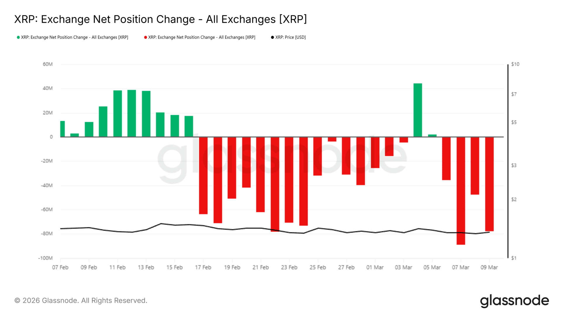 Auf der Blockchain zeichnet sich für XRP ein hoffnungsvolleres Bild ab. Große Mengen XRP werden von den Börsen abgezogen, was darauf hindeutet, dass Investoren diese Token in ihre eigenen Wallets verschieben.