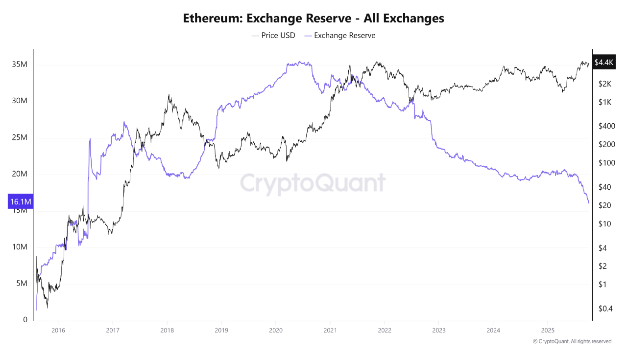 Unterdessen deuten On-Chain-Daten auf einen strukturell rückläufigen Verkaufsdruck hin. Die Zahl der auf Börsen liegenden Ethereum-Coins ist seit 2022 um mehr als ein Viertel auf rund 16,1 Millionen ETH gesunken. Das spricht dafür, dass Anleger ihre Coins häufiger in Eigenverwahrung halten, statt sie für einen Verkauf bereitzustellen.