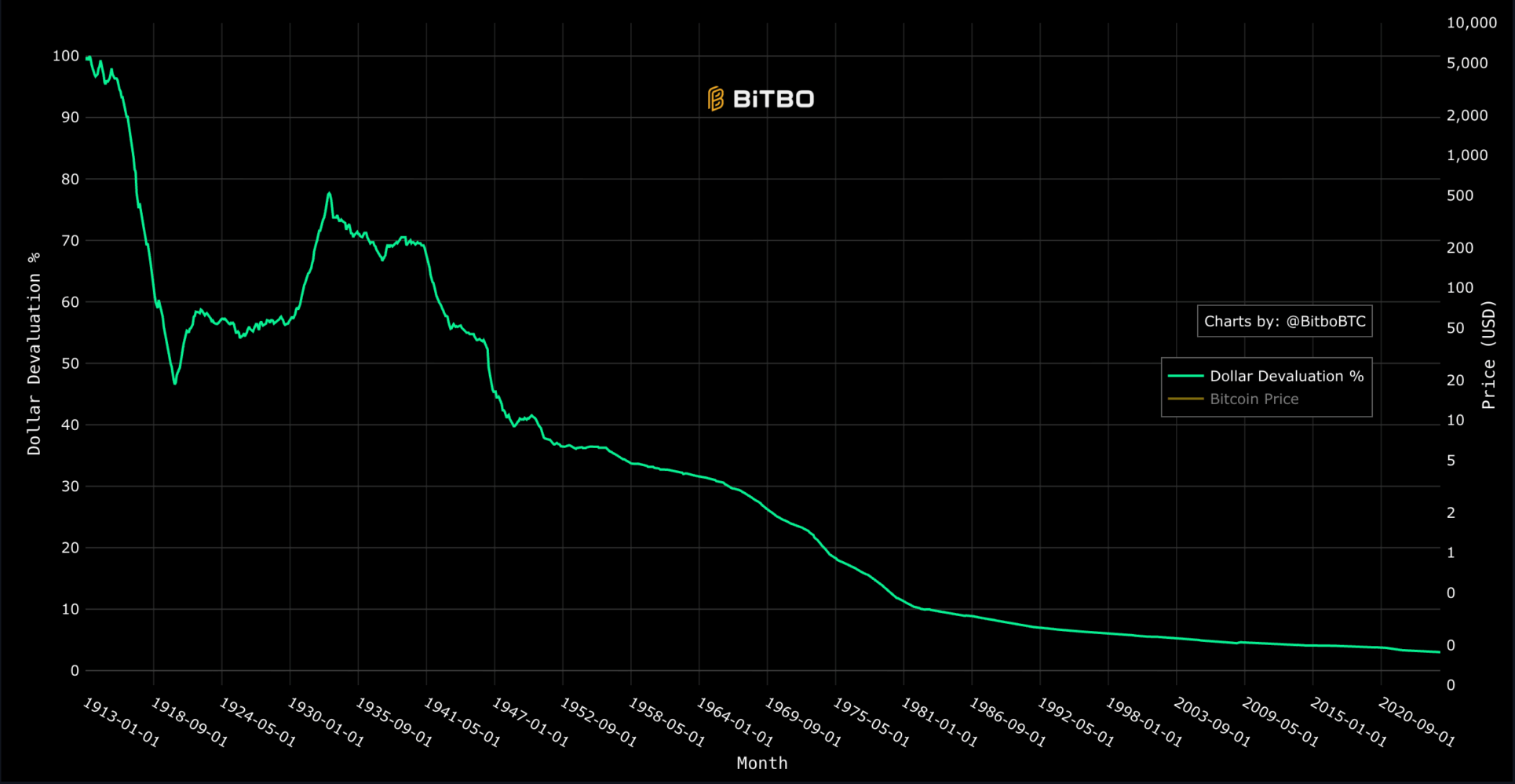 Laut Livingston zeigt der US-Dollar, wie weit die Entwertung gehen kann. Die Währung hat seit 1913 durch Inflation mehr als neunzig Prozent ihrer Kaufkraft verloren.
