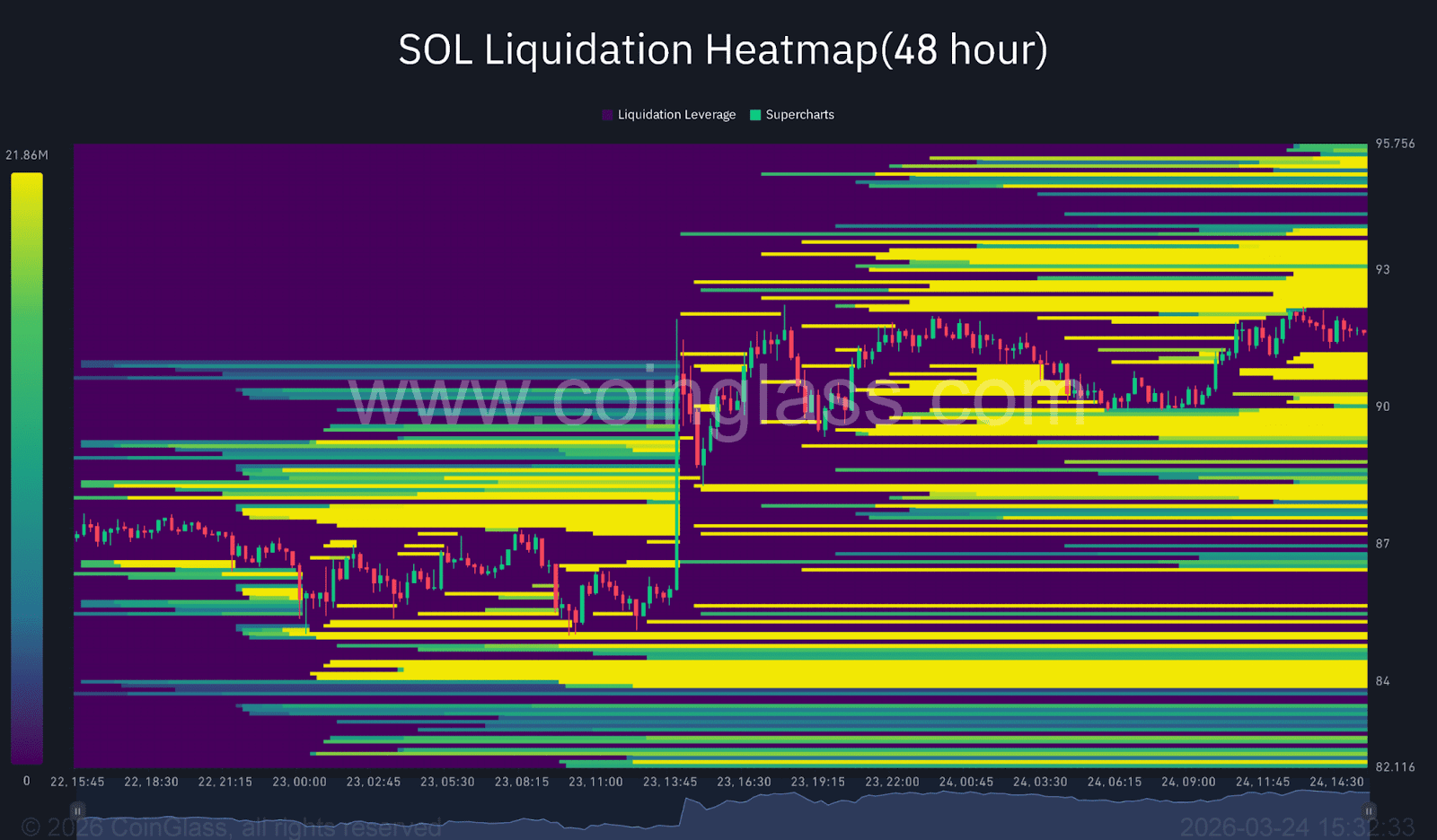 Aus Liquidationsdaten geht hervor, dass zwischen 94 und 96 Dollar erhebliche Short-Liquidität vorhanden ist. Wenn der Kurs diesen Bereich erreicht, können Short-Positionen beschleunigt geschlossen werden, was zusätzlichen Kaufdruck erzeugt. Dieses Phänomen, bekannt als Short Squeeze, ist derzeit ein wesentlicher Treiber für den Anstieg.