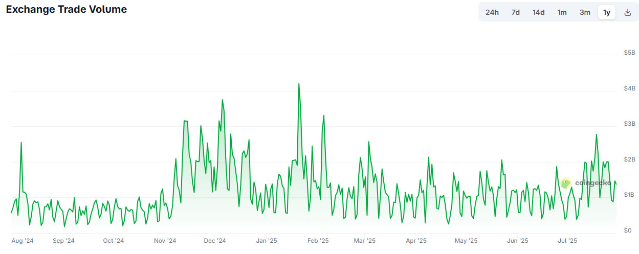 Das Volumen auf Kraken ist im vergangenen Jahr relativ stabil geblieben.