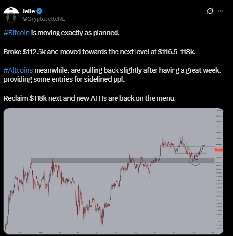 Wir sind nämlich immer noch sicher über 112.500 Dollar. “Wenn 118.000 Dollar erneut erobert werden, sind neue Allzeithochs wieder in Reichweite,’’ sagt der Analyst.