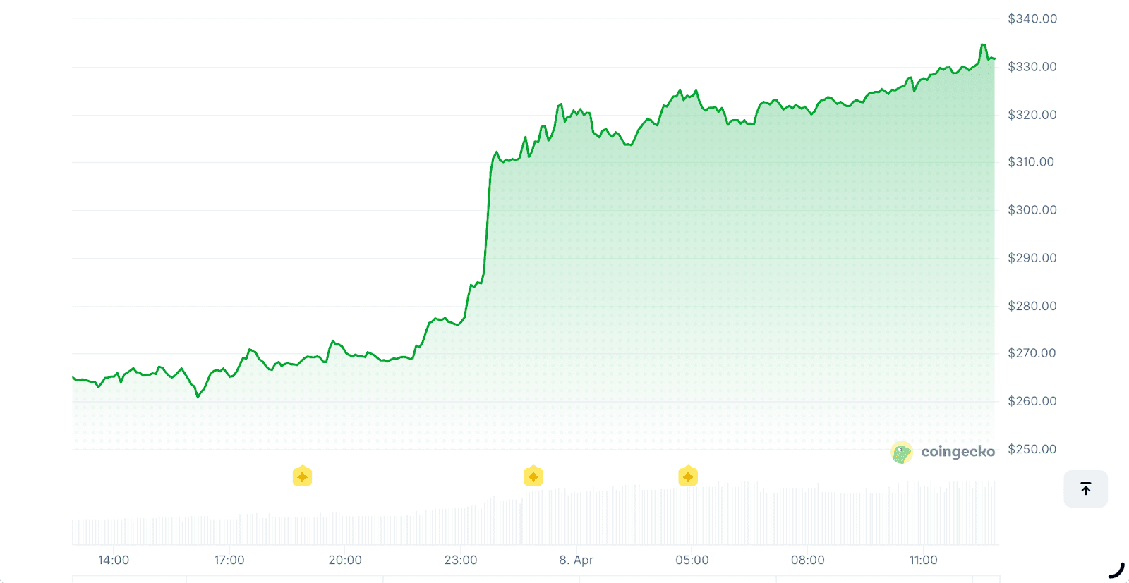 ZEC steht heute 25 Prozent im Plus und erreicht 331 Dollar pro Token. Die gesamte Marktkapitalisierung steigt damit auf über 5,5 Milliarden Dollar.