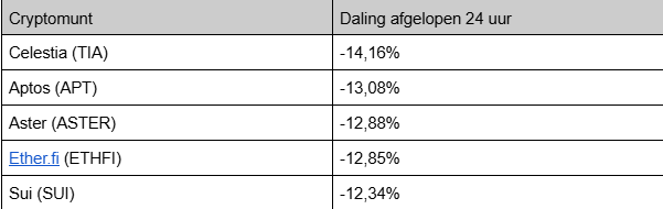 Ethereum (ETH) ist um 3,65 Prozent gesunken, Ripple (XRP) um 3,51 Prozent und Solana (SOL) um 5,99 Prozent. Sui (SUI), die 19. größte Coin, ist mit einem Verlust von 12,26 Prozent einer der größten Verlierer.