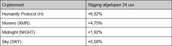 Nur wenige Kryptowährungen trotzen dem Abwärtstrend. Zu den wenigen Coins, die im Plus sind, gehören vor allem datenschutzorientierte Coins. Hier die einzigen Top-100-Gewinner der vergangenen 24 Stunden: