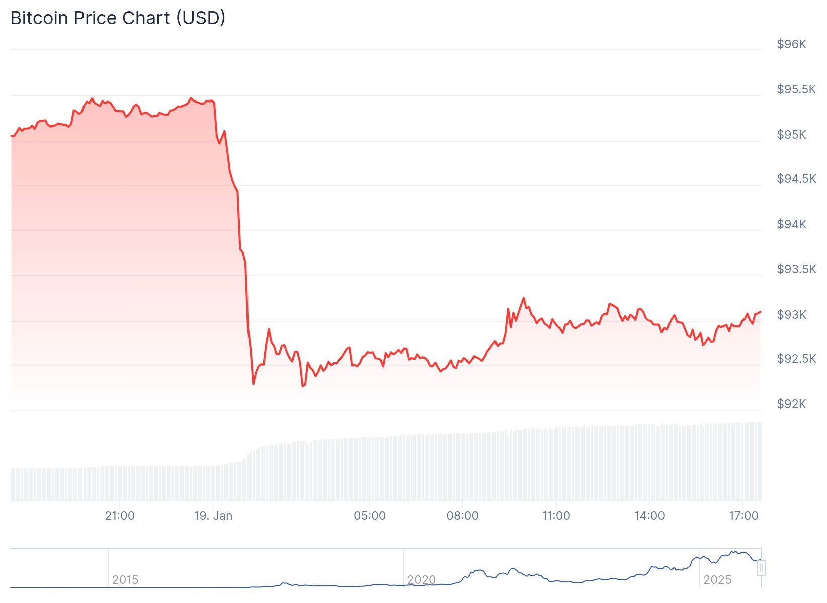 Gegen Mitternacht lag der Preis für die digitale Währung noch bei 95.500 Dollar, doch nach der Eröffnung der US-Futures-Märkte brach der Kurs auf ein Tief von 92.000 Dollar ein. In diesem Artikel erfahren Sie, wie es zu diesem schnellen Rückgang kommen konnte.