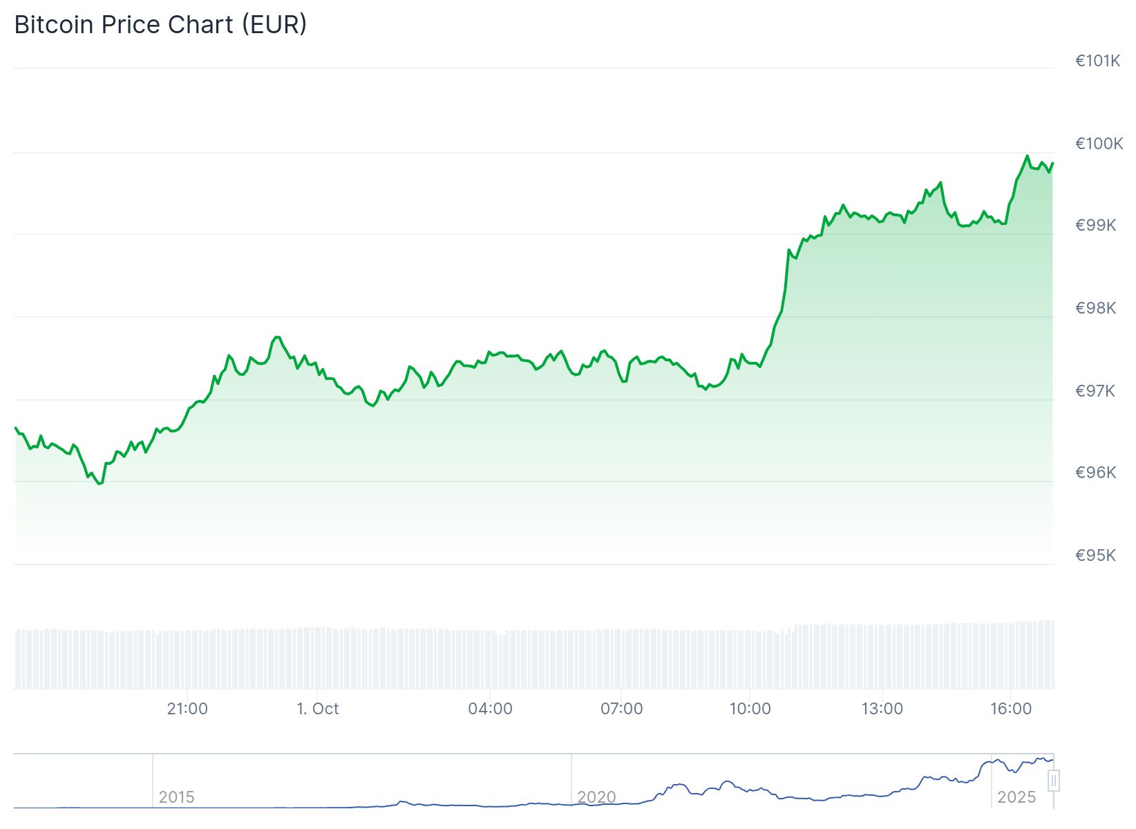 Zum Zeitpunkt des Schreibens steht der Bitcoin-Kurs bei 117.358 Dollar – ein Plus von 3,69 Prozent gegenüber vor 24 Stunden. In Euro werden für die größte Krypto derzeit 99.874 gezahlt.