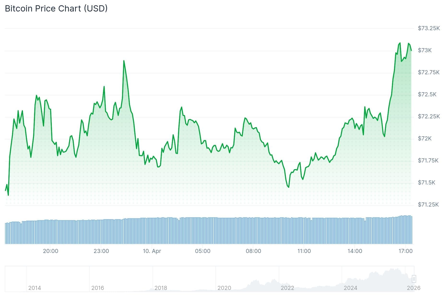 Zum Zeitpunkt des Schreibens notiert der BTC-Kurs bei 72.943 Dollar, 2,22 Prozent höher als vor 24 Stunden. In Euro beträgt der Preis aktuell 62.232 für die größte Kryptowährung.