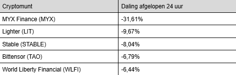 Der Großteil des Marktes steht jedoch niedriger als gestern. Hier die größten Top-100-Verlierer der letzten 24 Stunden: