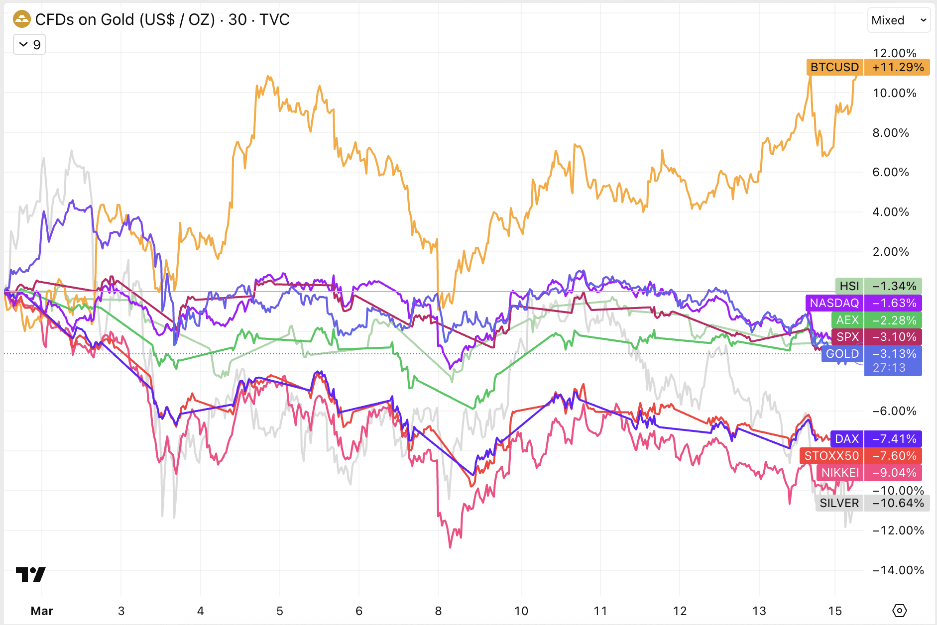 In diesem Szenario würde der Ölpreis vermutlich langfristig auf erhöhtem Niveau bleiben und schließlich dauerhafte wirtschaftliche Schäden verursachen. Auch Bitcoin könnte in diesem Fall nicht standhalten.
